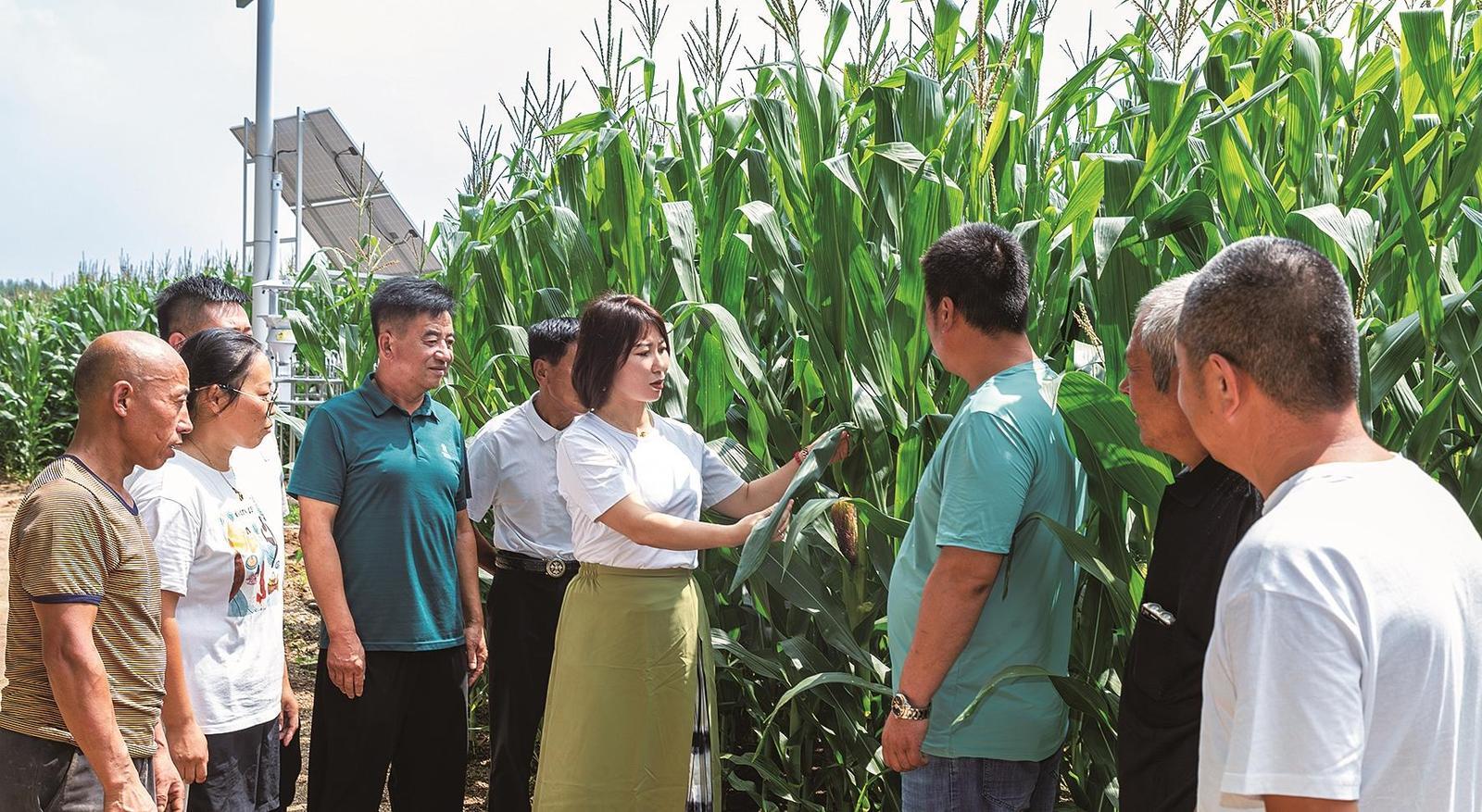 鞭策加工端“链”变。依托天然禀赋、特色财产劣势,和村平易近们查看玉米授粉和长势环境。